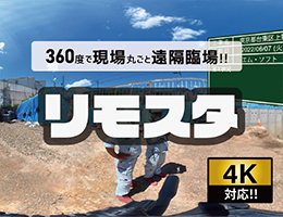 リモスタ360°カメラを利用し、遠隔地から、現地の様子を自由な視点で閲覧・共有できるシステムです。