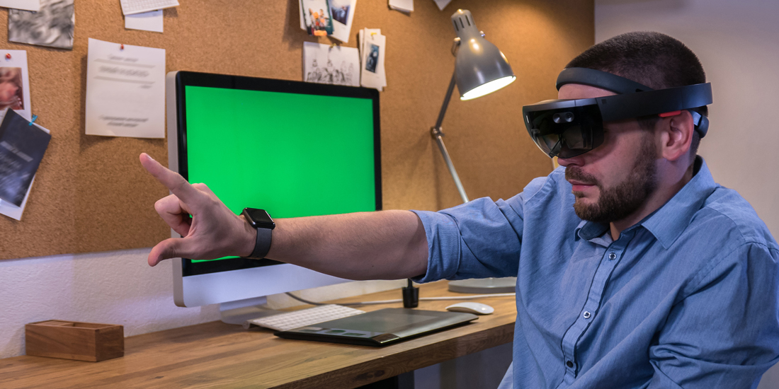 MRに最適なツールとして米国マイクロソフト社が開発したシースルー(透過)型と呼ばれるヘッドマウントディスプレイ(HMD)です。HoloLens等を使った現実世界をベースとするMRの世界では、今までのVRでは難しかった歩き回ると言った動作も実現可能になります。より視界が広く、軽量化されたHoloLens2が2019年末に公開され、ビジネス領域でのMR利用の原動力になっています。