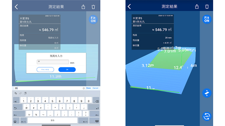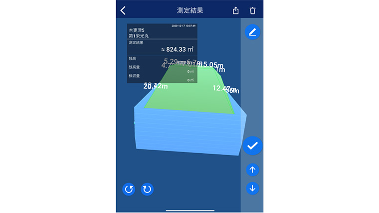 スマホで計測範囲を指定するだけの簡単作業で、即座にその場で測量結果を確認することができます。