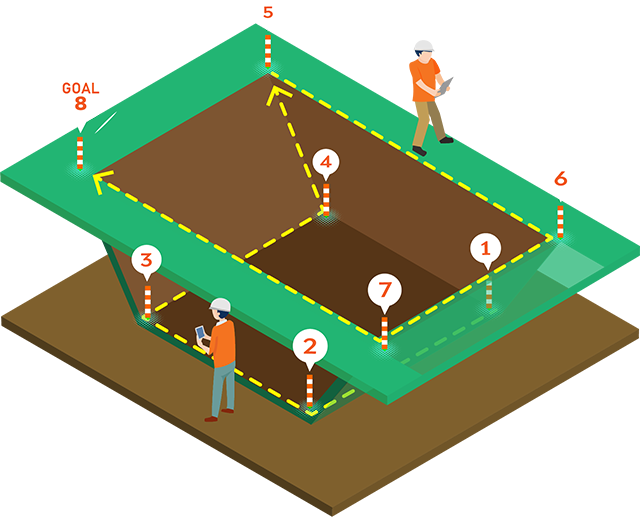 底面4点と上面4点を指定して、掘削現場の体積を計測します。