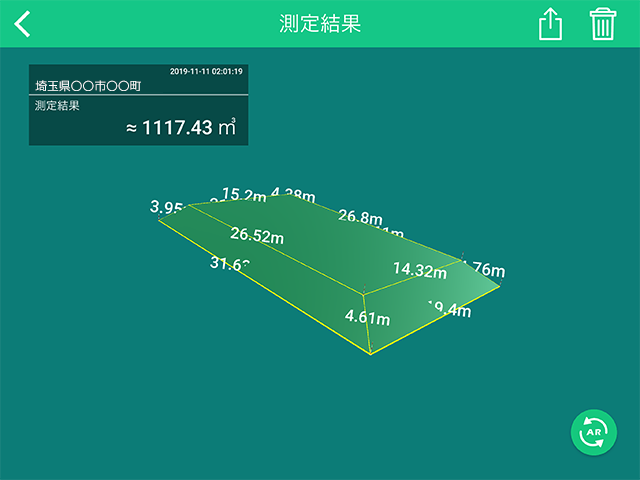 ※ご利用になる端末(LiDARスキャナ―搭載の有無など)、環境によって測量精度が変動する可能性がございます。本アプリは簡易測量アプリのため、計測結果、精度を保証するものではありません。
