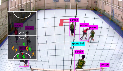 ポジション・位置解析競技場に取り付けたカメラから選手やボールの位置を把握し、デジタル情報に変換。戦術理解や分析に応用可能です。
